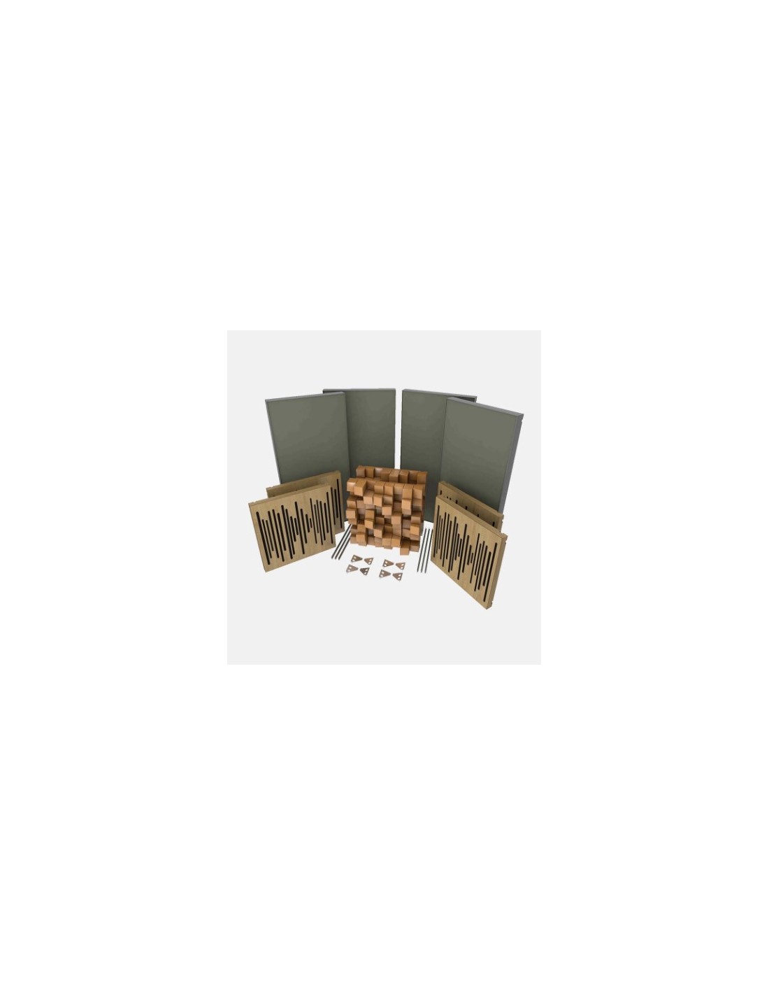 Dependiendo de tus objetivos, espacio disponible y presupuesto, puedes mejorar la acústica de tu sala, ya sea de una sola vez o en diferentes pasos, adquiriendo uno o varios kits. Puede comenzar con un kit para tratar los primeros reflejos de las paredes laterales y frontales, avanzar para mejorar el tratamiento del techo con un segundo kit y tratar completamente su habitación, incluidas las paredes traseras, en un tercer paso.